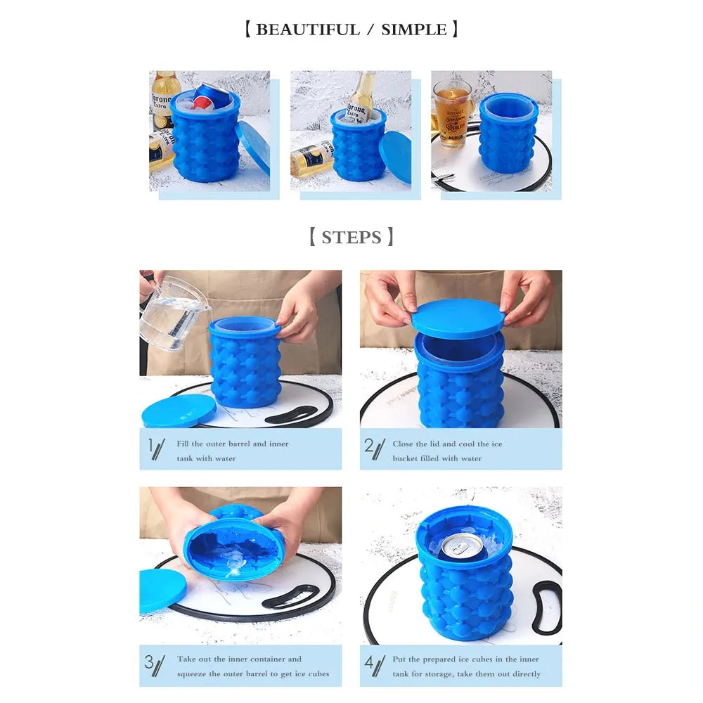 Small Silicone Ice Maker Bucket Fast Cold Ice Cube Storage for Kitchen