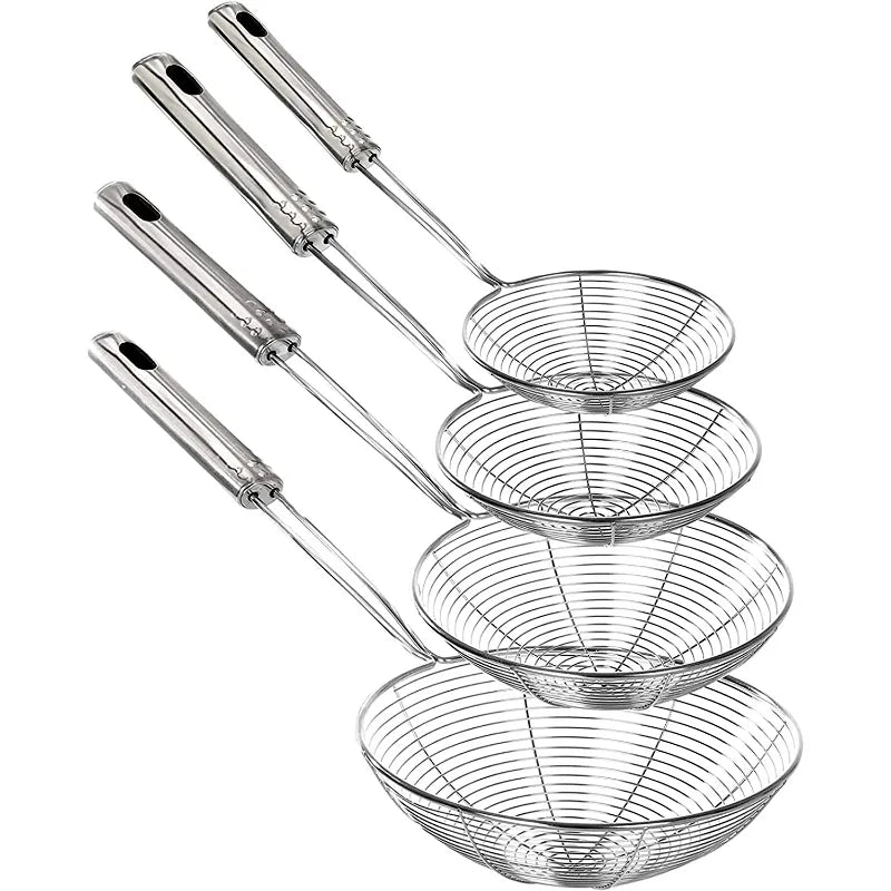 4-Piece Complete Set: Different sizes for all your frying and straining needs.