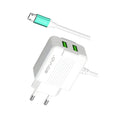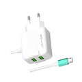 SOVO 2.4A Fast Charger with Built In Micro USB Cable Dual USB Port Smart IC Overheat Protection Wall Adapter
