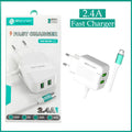 Charge two devices simultaneously with the SOVO 2.4A High-Quality Micro Charger with Dual USB Output. This smart wall charger comes with a permanently attached Micro USB cable plus an extra USB-A port (total 2.4A output) for fast, efficient charging of phones, tablets, power banks, and accessories.