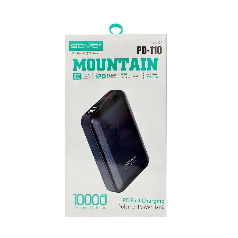 SOVO PD-110 MOUNTAIN 10,000mAh 22.5W PD + QC Fast Charging Power Bank with LCD Display