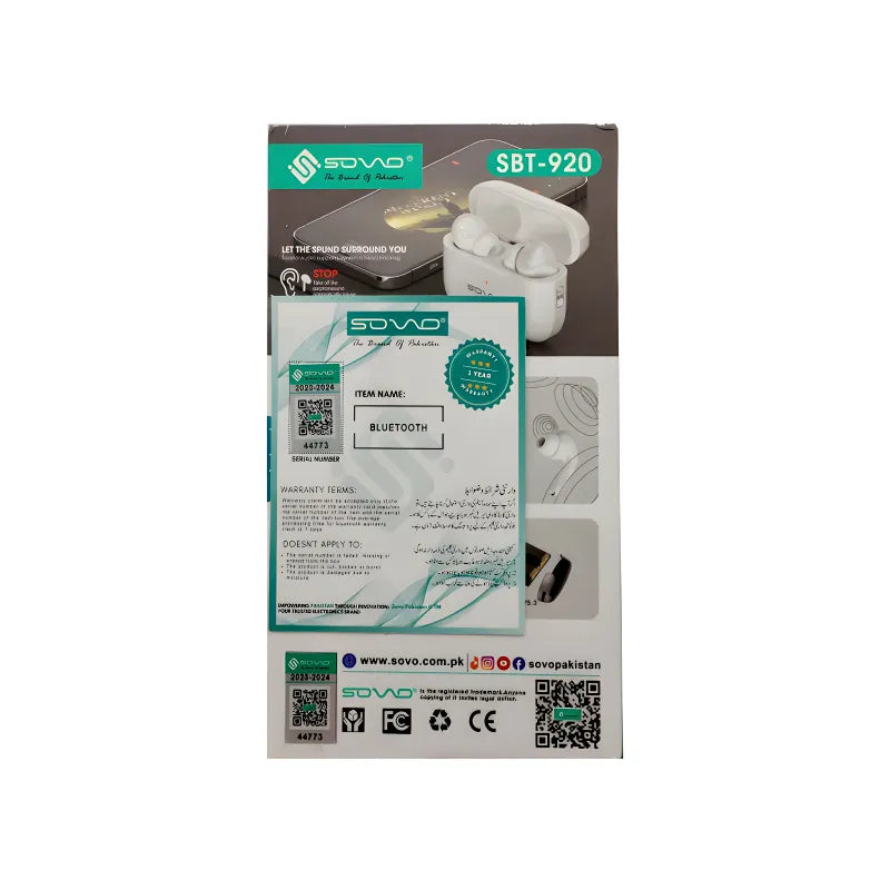 The SOVO SBT-920 combines cutting-edge tech with user-centric design for a premium wireless experience.