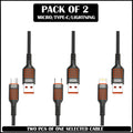 Pack of 2 × 3-in-1 Cables (Micro + Type-C + Lightning)