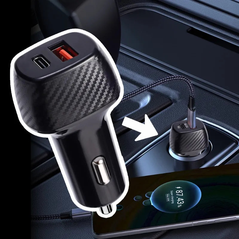 Dual Ports → USB-A + Type-C for charging two devices simultaneously.