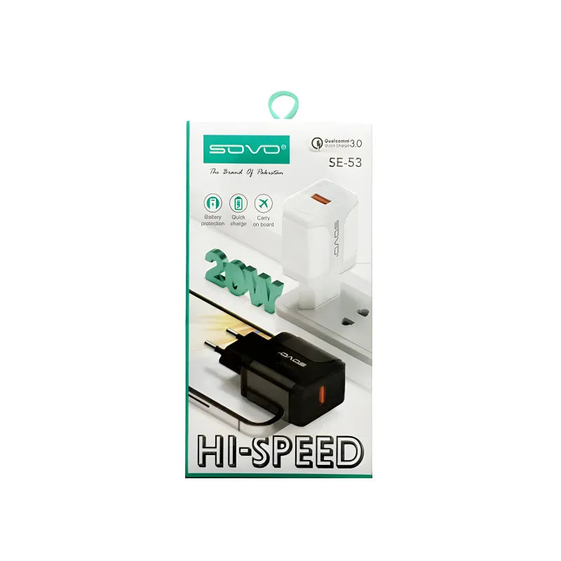SOVO SE-53 Hi-Speed 20W PD Quick Charge USB Wall Adapter