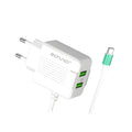 SOVO SG77 FIRE TC 2.4A Fast Charger with Built In Type C Cable Dual USB Output Smart IC Safety Protection