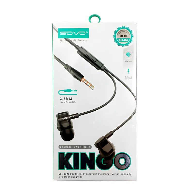 Experience pure audio excellence with the SOVO SH-06 Kingo Stereo Handsfree! Delivering rich 3D surround sound and deep powerful bass, these premium in-ear earphones come with an HD microphone featuring dual-layer noise reduction for crystal-clear calls even in noisy environments. The universal 3.5mm jack and inline remote make them perfect for music, gaming, calls, and online meetings. Ergonomic design + soft silicone tips ensure hours of comfortable wear.