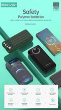 High-Capacity 20000mAh Battery: Powers multiple devices with a long-lasting Li-Polymer battery for extended use.