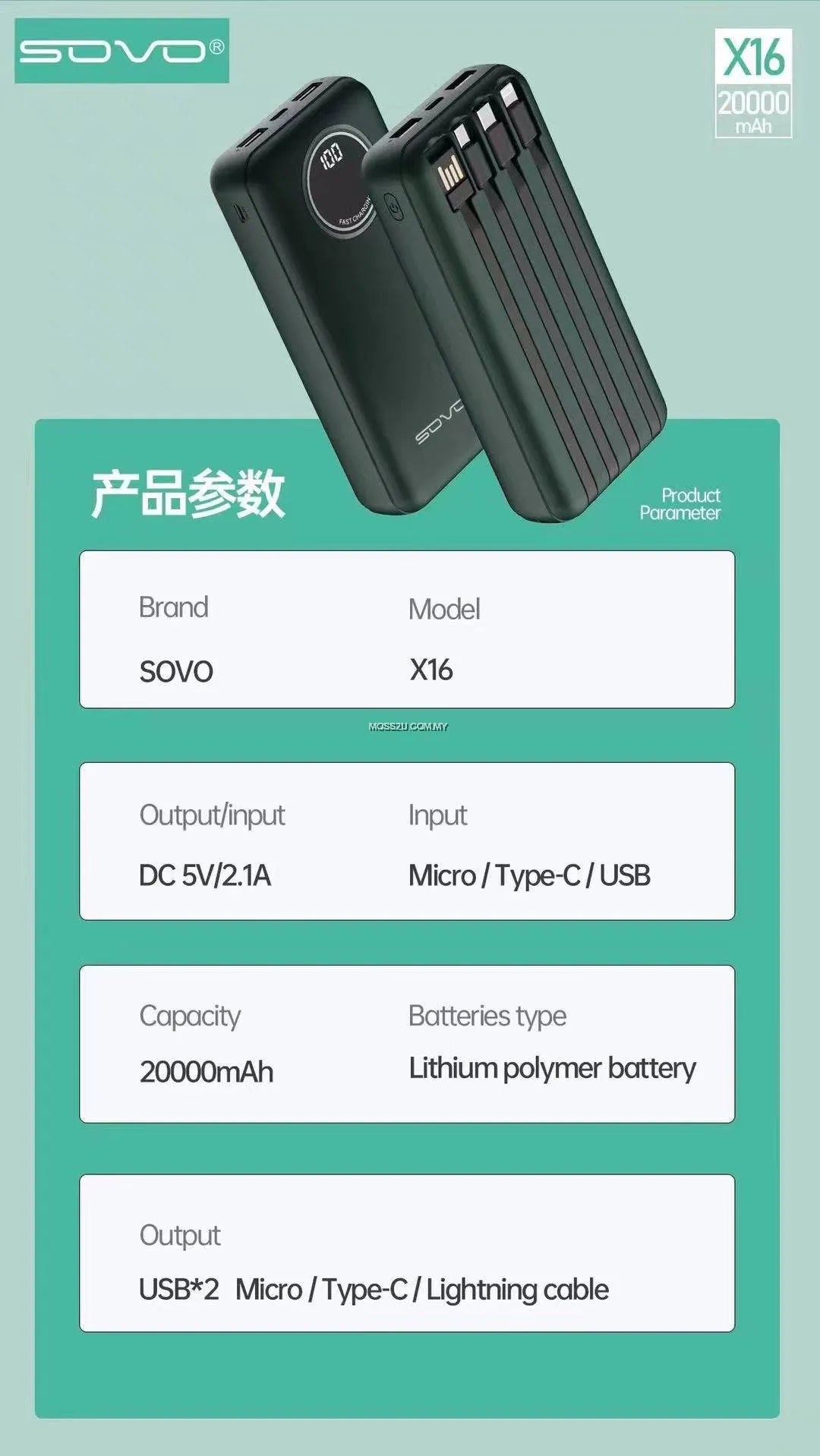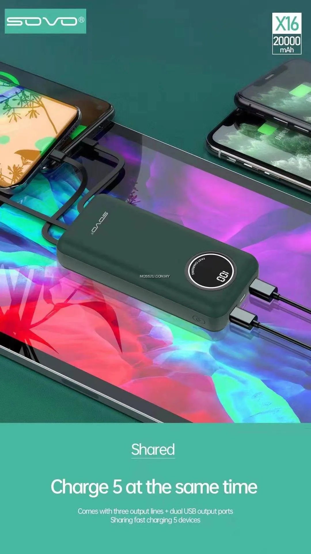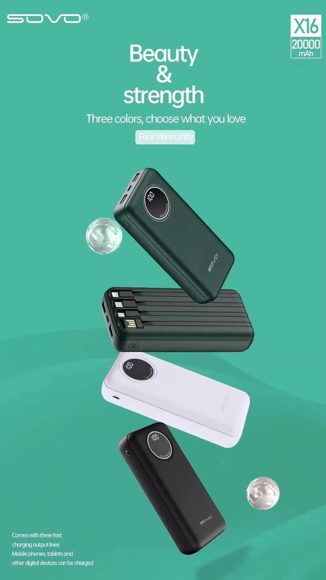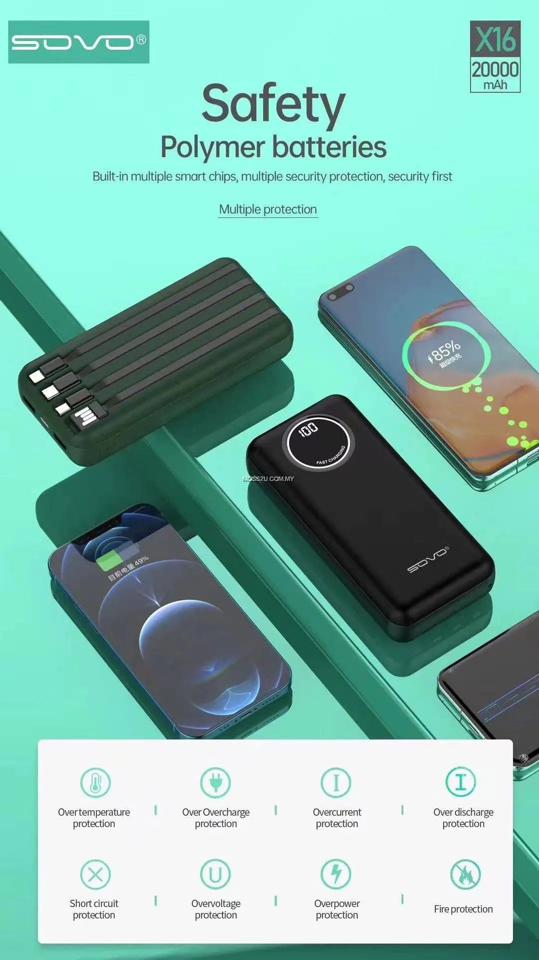 Ideal for travelers, professionals, and tech enthusiasts, the SOVO X16 20000mAh Power Bank offers reliable, high-speed charging with unmatched convenience.