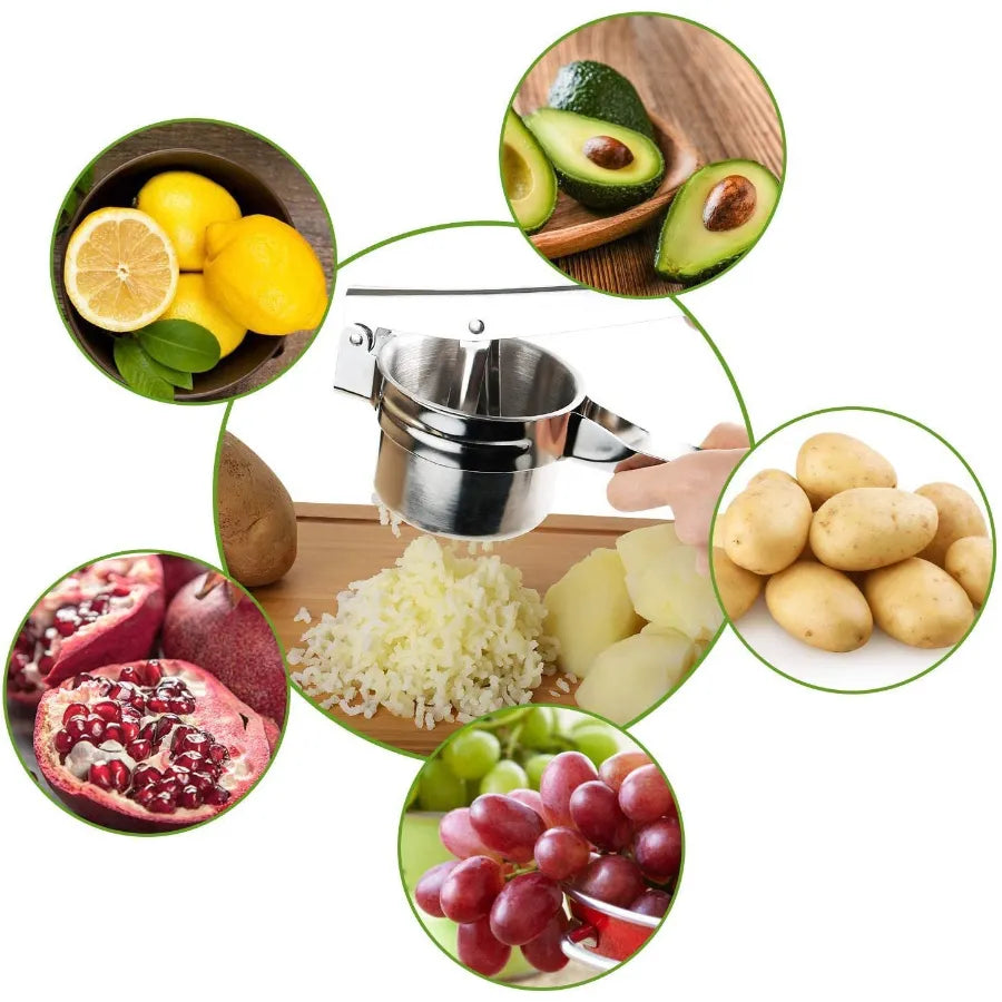 Extract fresh juice effortlessly with the Stainless Steel Manual Water Squeezer Juice Extractor, a professional-grade hand press designed for maximum juice yield with minimum effort. Made from food-grade 304 stainless steel, this durable juicer easily handles oranges, lemons, limes, pomegranates, grapefruits, and even cooked vegetables like potatoes, carrots, and garlic for purees.