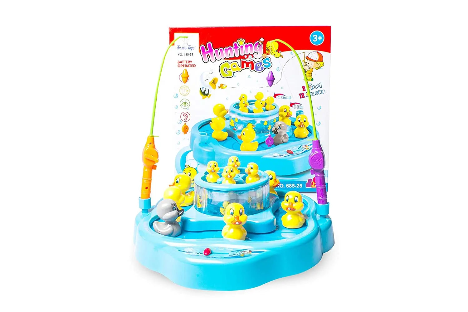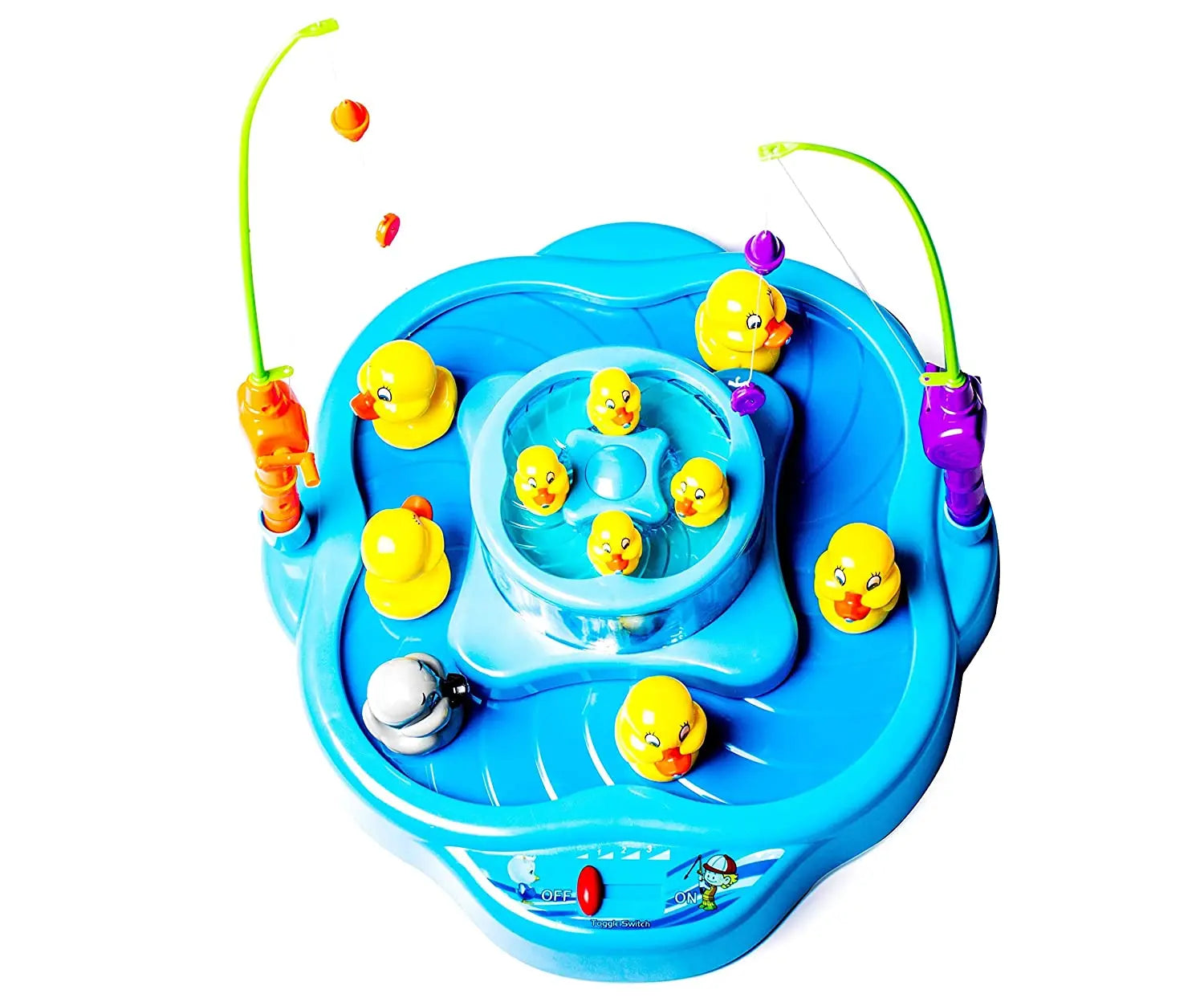 Interactive Gameplay: Flick the switch and watch the ducks spin. The goal is to catch as many ducks as possible using the included magnetic rod.