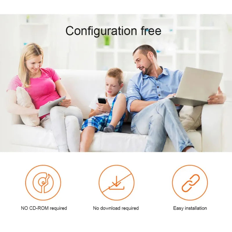 Plug-and-Play Setup: Automatically installs without drivers or CD-ROM, enabling quick and easy wireless internet access.