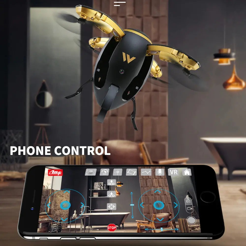 The W5 Mini Egg Shaped RC Drone is a compact and foldable quadcopter designed for kids and drone enthusiasts. This drone features a built-in 0.3MP HD camera, allowing for real-time FPV (First Person View) transmission through WIFI. With stable flight control and foldable arms, this drone is easy to carry and perfect for outdoor or indoor flying fun.