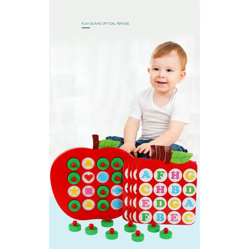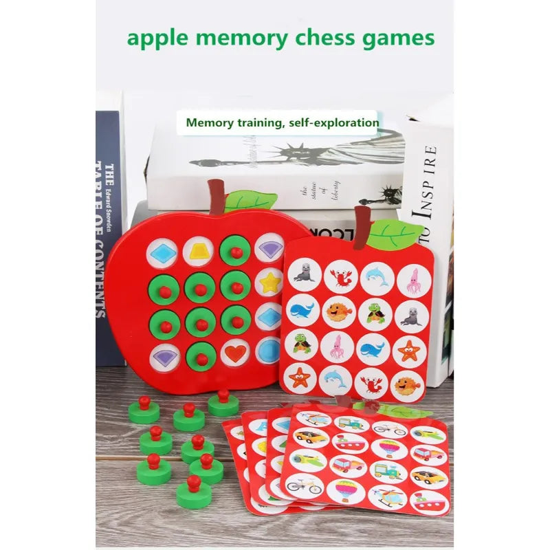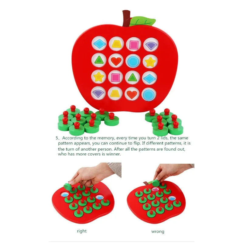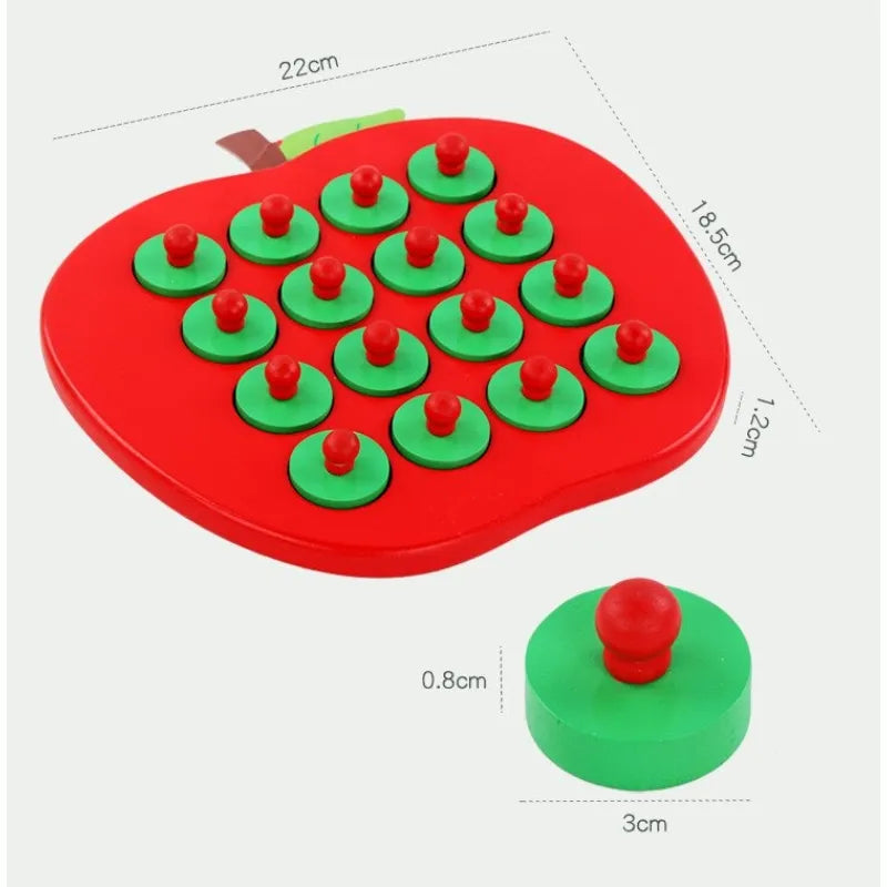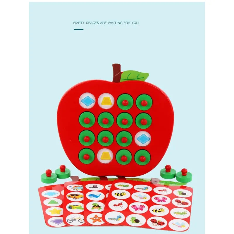 Wooden Apple Memory Chess Game Montessori Memory Match Toy with 5 Double-Sided Cards