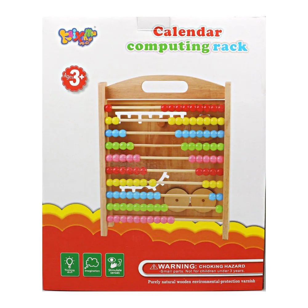 Wooden Calendar Clock and Abacus Educational Toy Rack for Kids